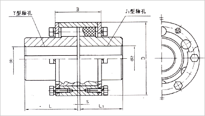 | 型號(hào) | 公稱扭矩 Tn(N.m) | 軸孔直徑d1 d2 d3 | 軸孔長(zhǎng)度 | D | B | S | 質(zhì)量m Kg |
