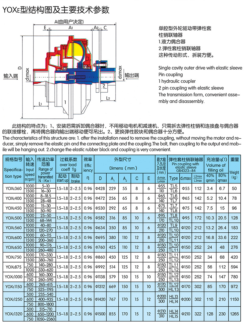 YOXe型:單腔型外輪驅動帶彈性套柱銷聯(lián)軸器